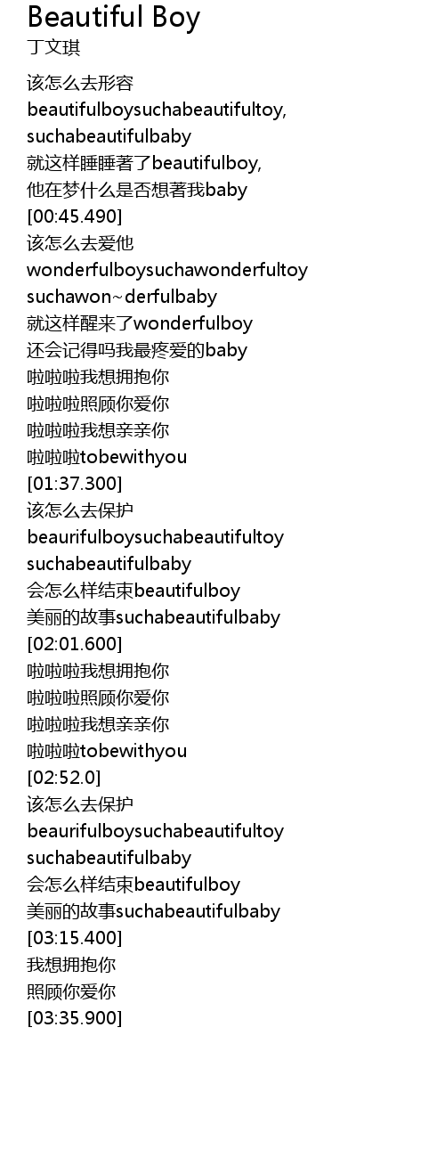 | [00:35.200] | jiu zhe yang shui shui zhe le beautifulboy, |