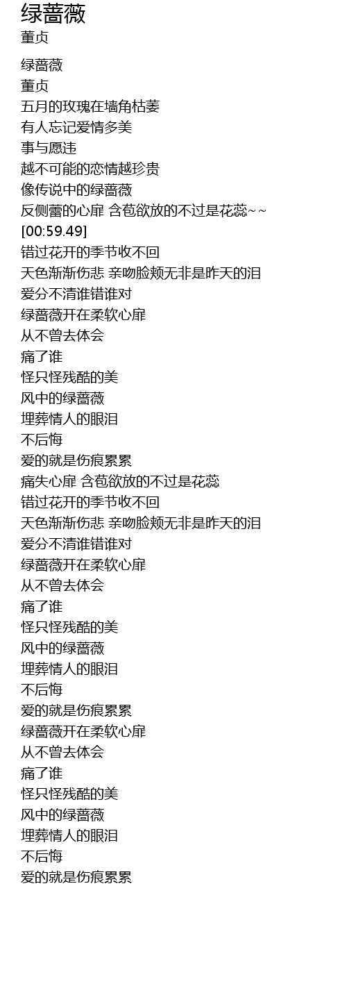 | [00:44.96] | 像传说中的绿蔷薇 |