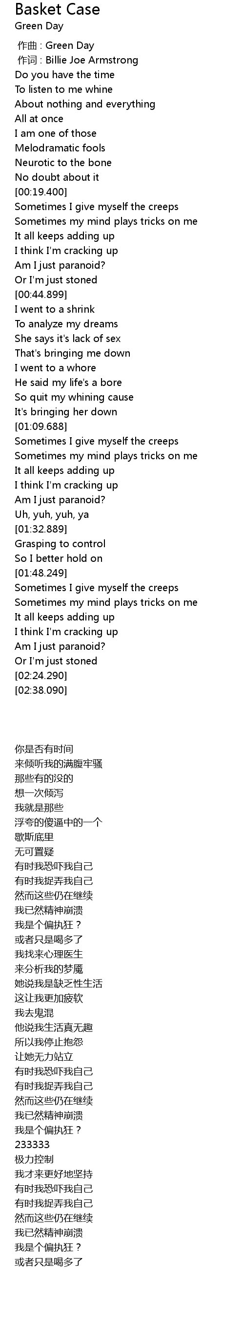 | [00:00.00] | 作曲 : Green Day |