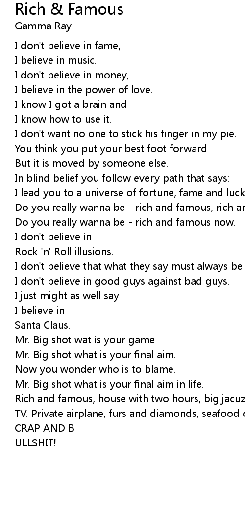 Do you really wanna be - rich and famous, rich and famous. |