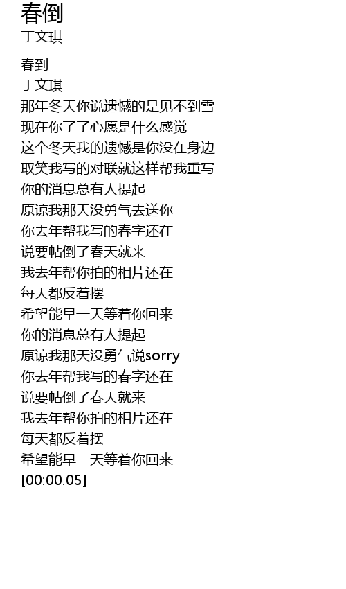 | [01:36.35] | shuō yào tiē dào le chūn tiān jiù lái |