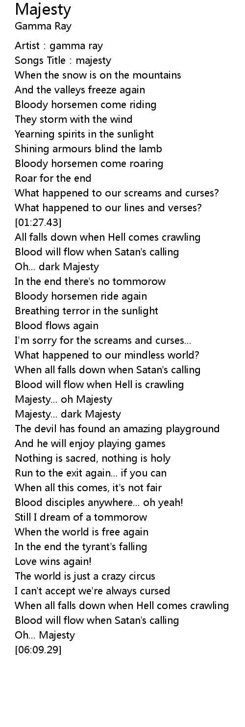 | [02:36.56] | Majesty... oh Majesty |