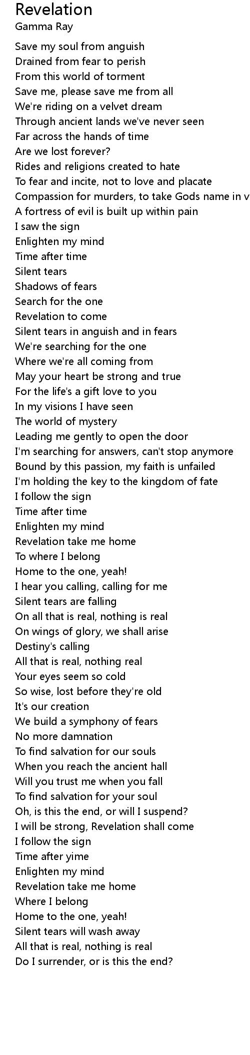 | Revelation take me home | |