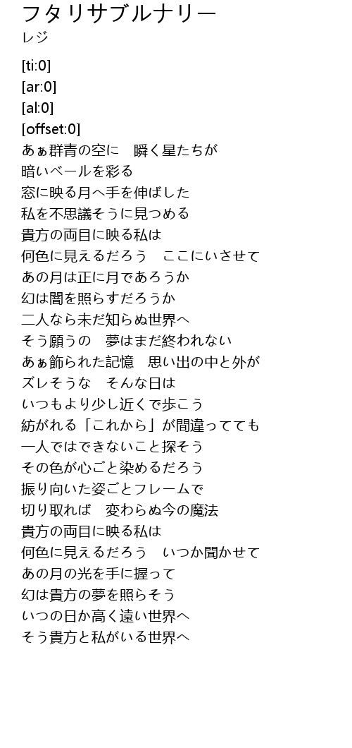 | [01:05.35] | 二人なら未だ知らぬ世界へ |