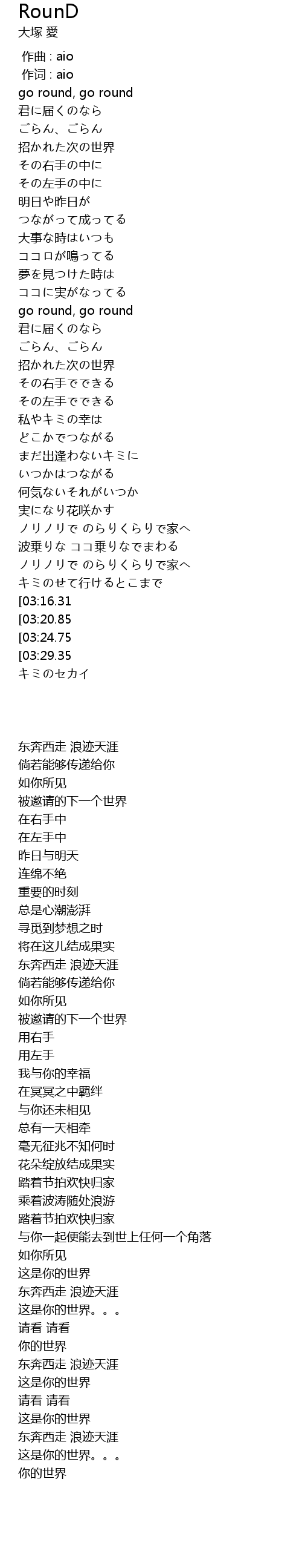 | [03:41.52][03:24.75][03:08.11] | go round, go round |