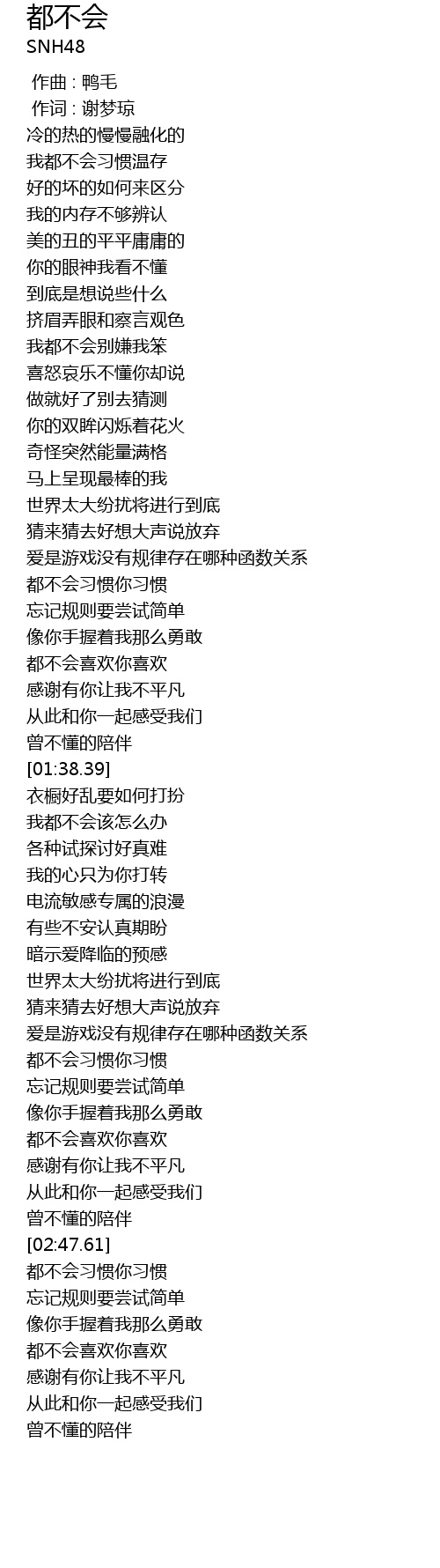 | [00:42.50] | 我都不会别嫌我笨 |