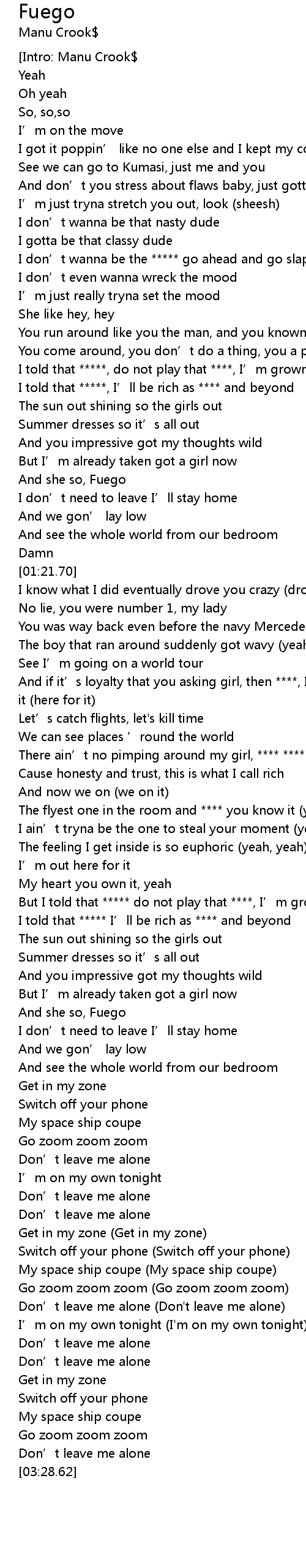 | [02:18.13] | I told that ***** I’ll be rich as **** and beyond |