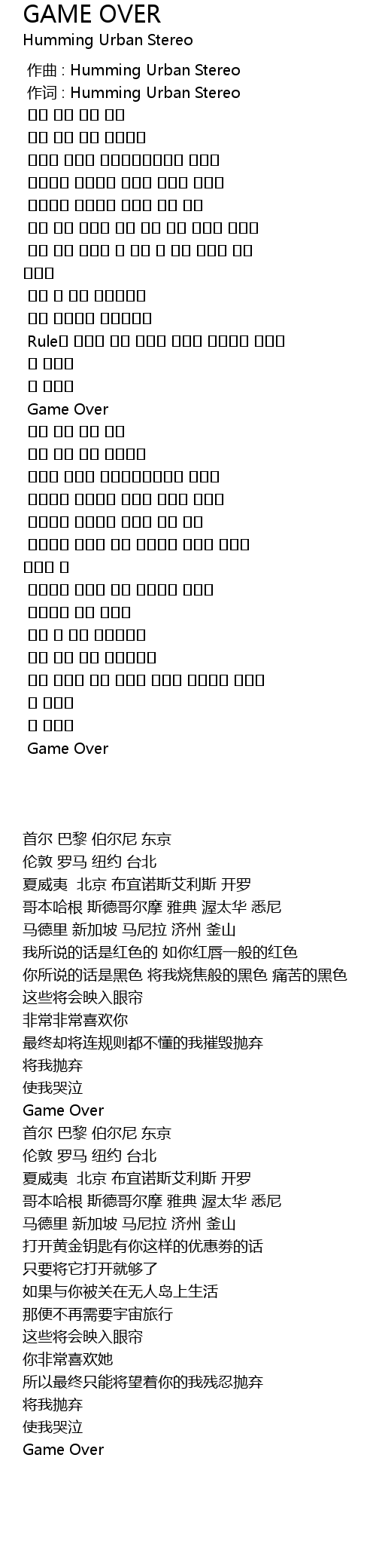 | [00:00.000] | 作曲 : Humming Urban Stereo |