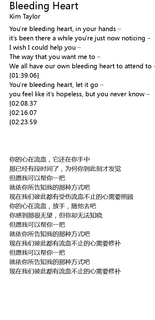 | [00:36.40] | You're bleeding heart, in your hands – |