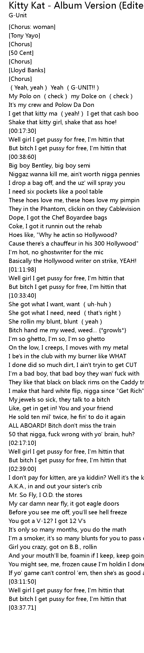 | [01:19.45] | Well girl I get pussy for free, I'm hittin that |