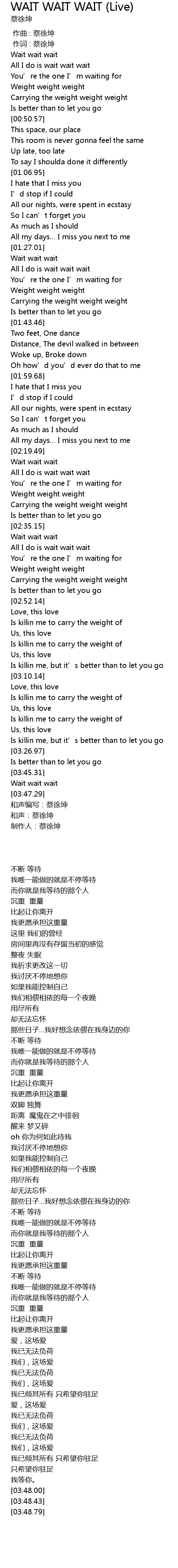 | [00:01.000] | 作词 : 蔡徐坤 |