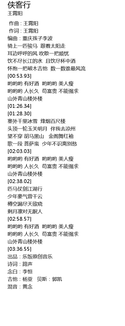 | [03:38.60] | 出品:乐饭原创音乐 |