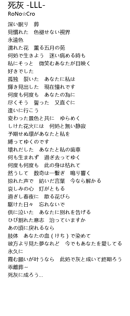 | [04:37.74] | 霞む願いが叶うなら 此処で灰と成いて終期ろう |