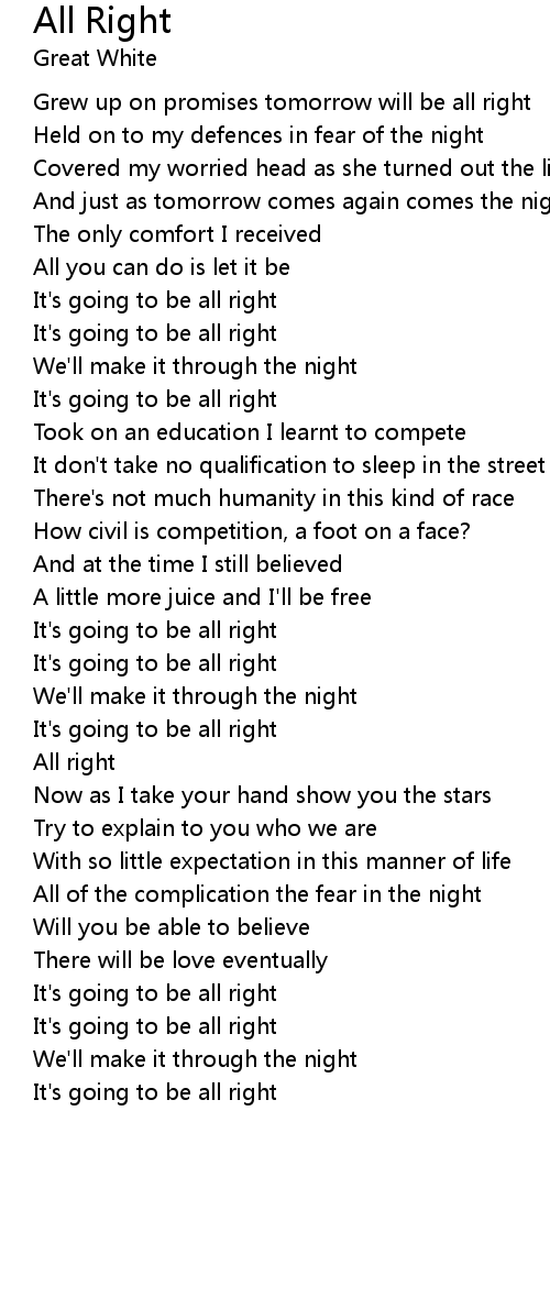 It's going to be all right |