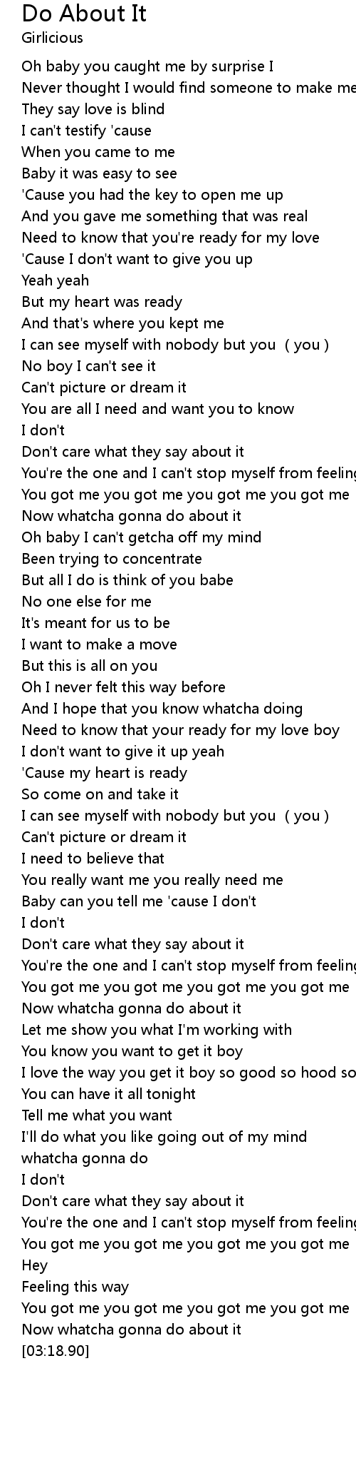 | [03:14.57] | Now whatcha gonna do about it |