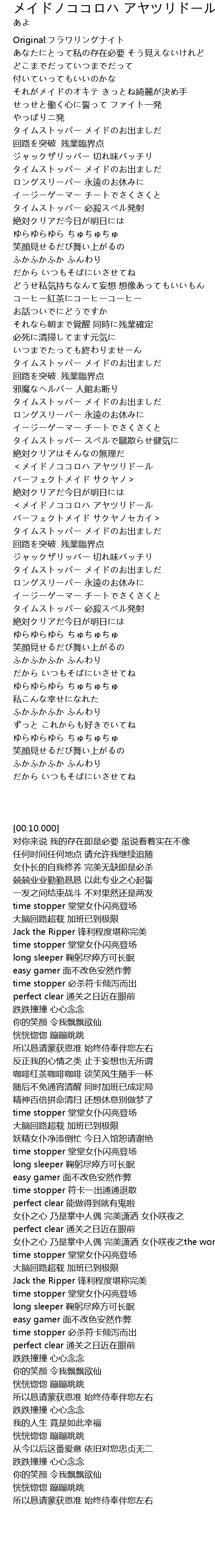 | [02:05.378] | タイムストッパー メイドのお出ましだ |
