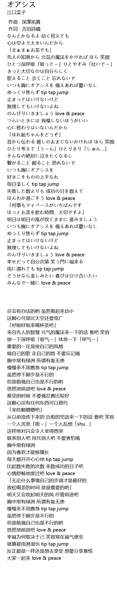| [02:13.76] | 毎日楽しく tip tap jump |