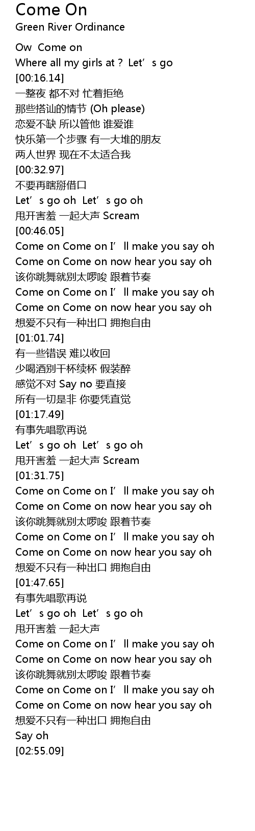| [00:46.91] | Come on Come on I’ll make you say oh |