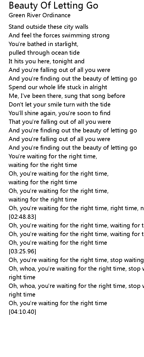 You're waiting for the right time, |