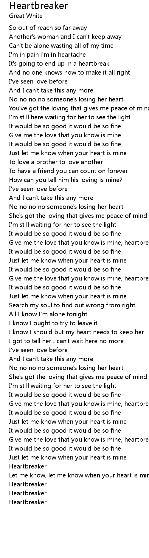 Give me the love that you know is mine, heartbreaker |