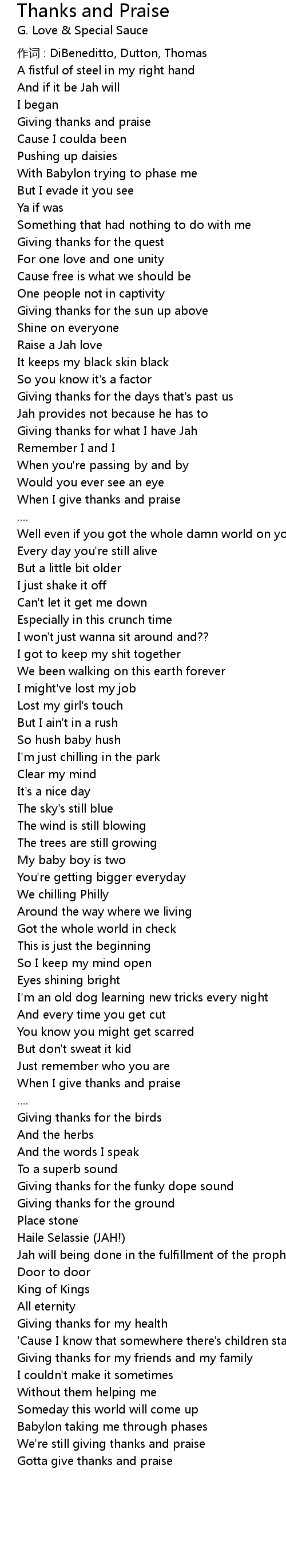 | Gotta give thanks and praise |