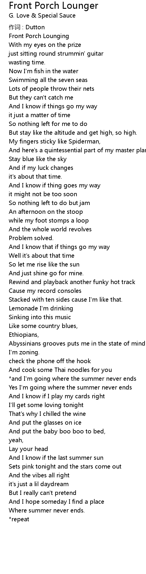 | Song | Front Porch Lounger |