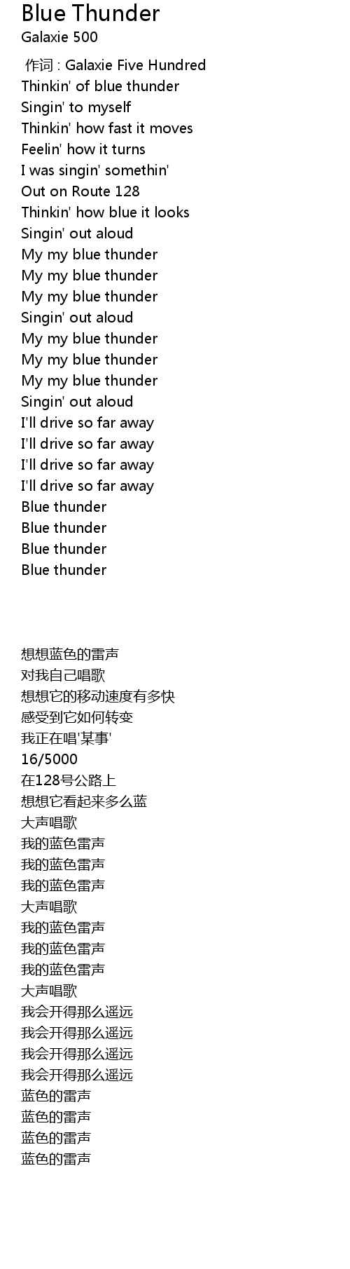 | [01:12.35] | My my blue thunder |
