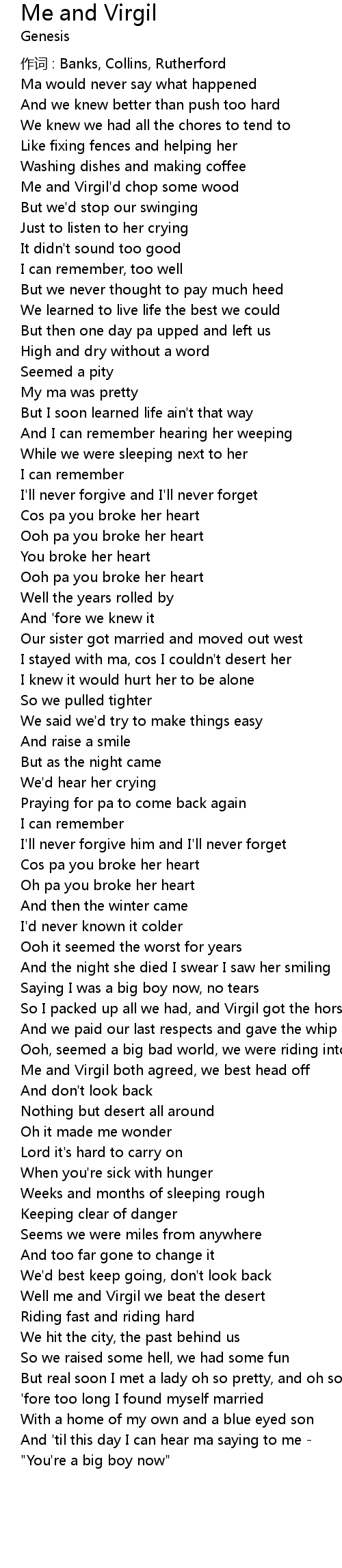 | Song | Me and Virgil |