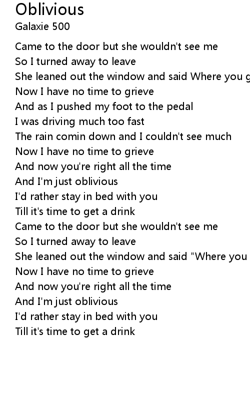 And I'm just oblivious |