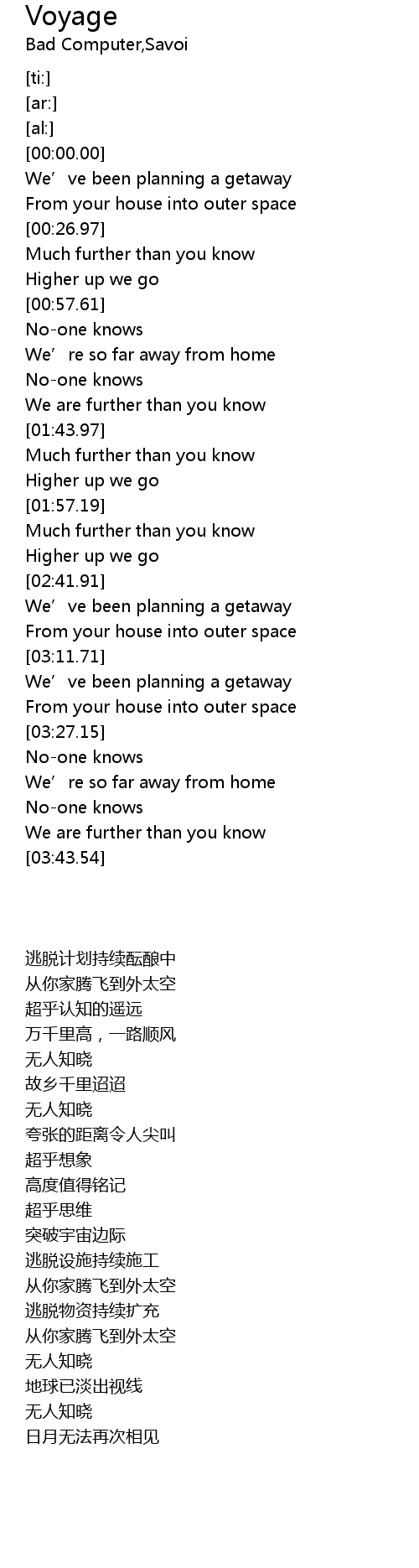 | [03:32.01] | We’re so far away from home |