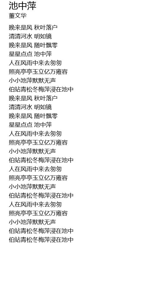| [03:23.60] | xiǎo xiǎo chí píng mò mò wú shēng |
