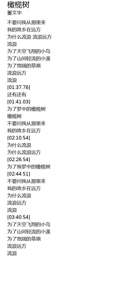 | [01:43.16] | 为了梦中的橄榄树 |