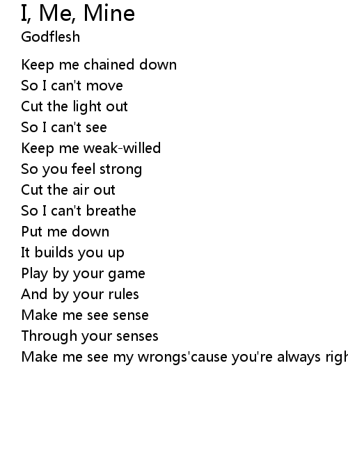| Song | I, Me, Mine |
