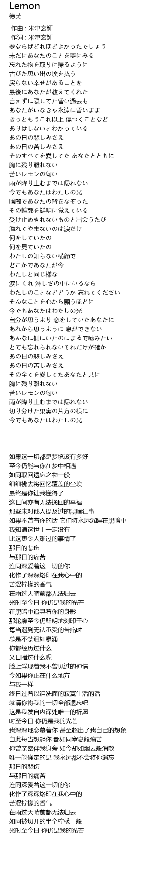 | [01:20.99] | 今でもあなたはわたしの光 |