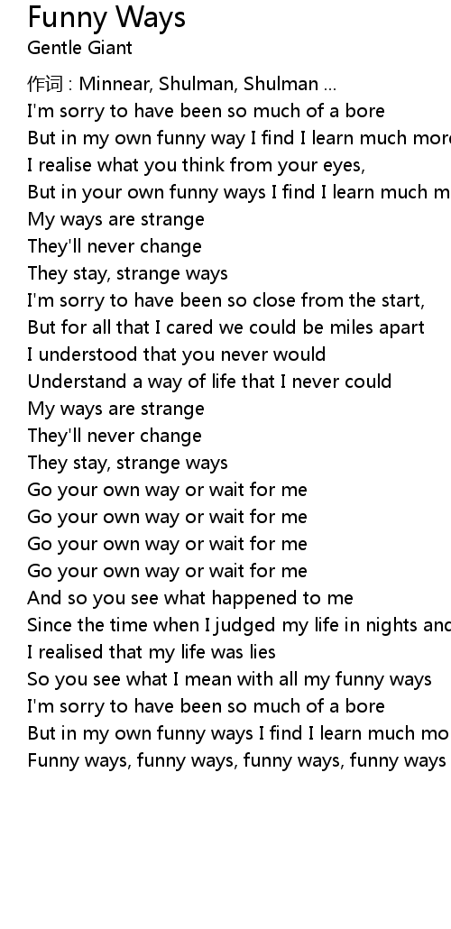 | Funny ways, funny ways, funny ways, funny ways |