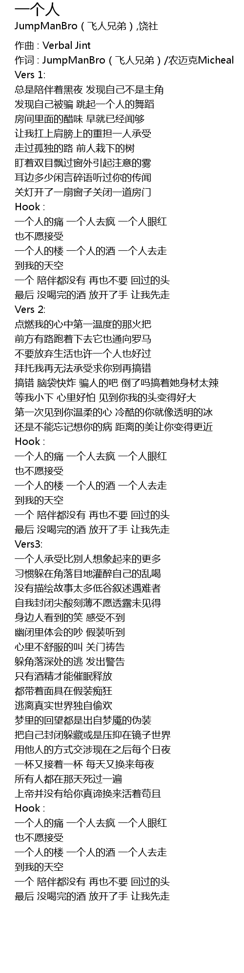 | 一个人的痛 一个人去疯 一个人眼红 | |