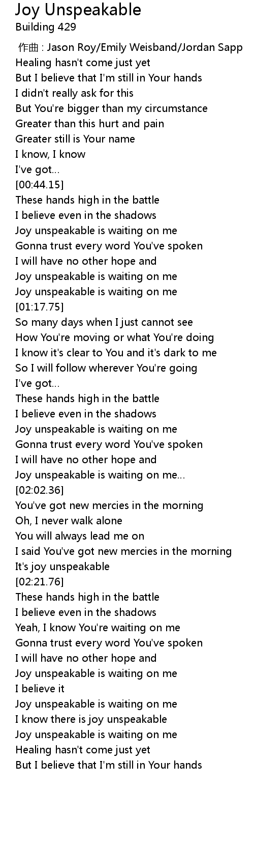 | [02:19.19] | It' s joy unspeakable |