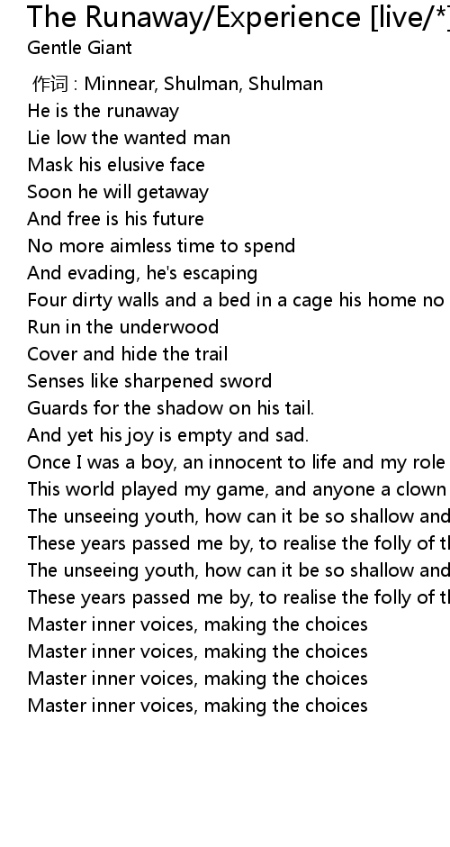 | [04:57.20] | These years passed me by, to realise the folly of these unripe years |