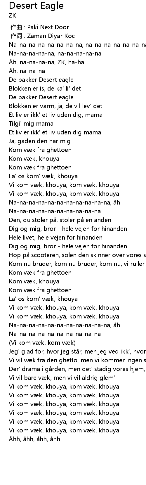 | [00:43.12] | Vi kom væk, khouya, kom væk, khouya |