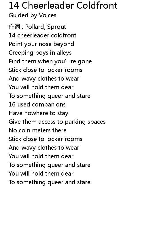 | Song | 14 Cheerleader Coldfront |