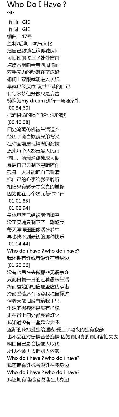 | [01:51.18] | Who do i have? who do i have? |