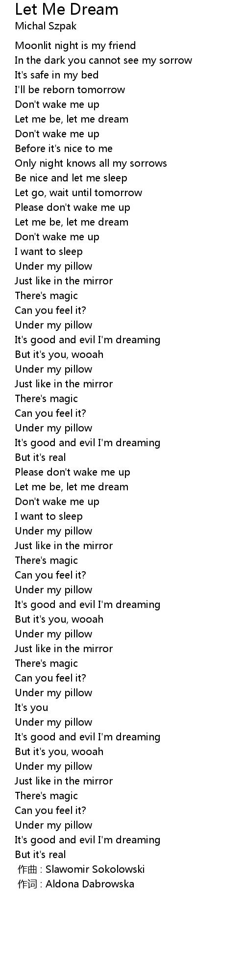 | [00:00.000] | 作词 : Aldona Dabrowska |