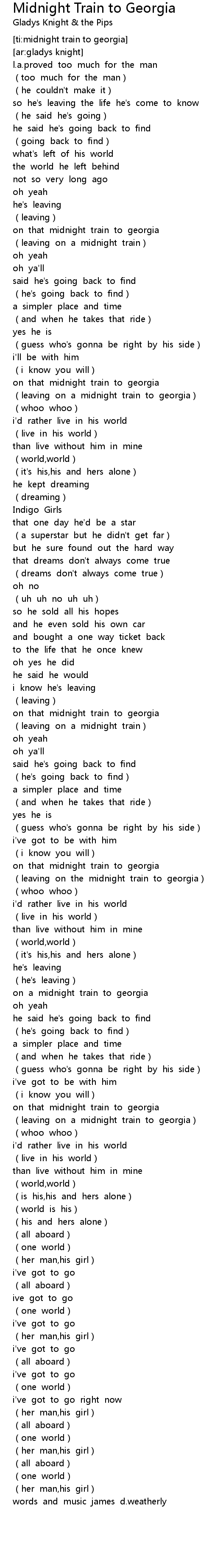 | [02:47.211] | on that midnight train to georgia |