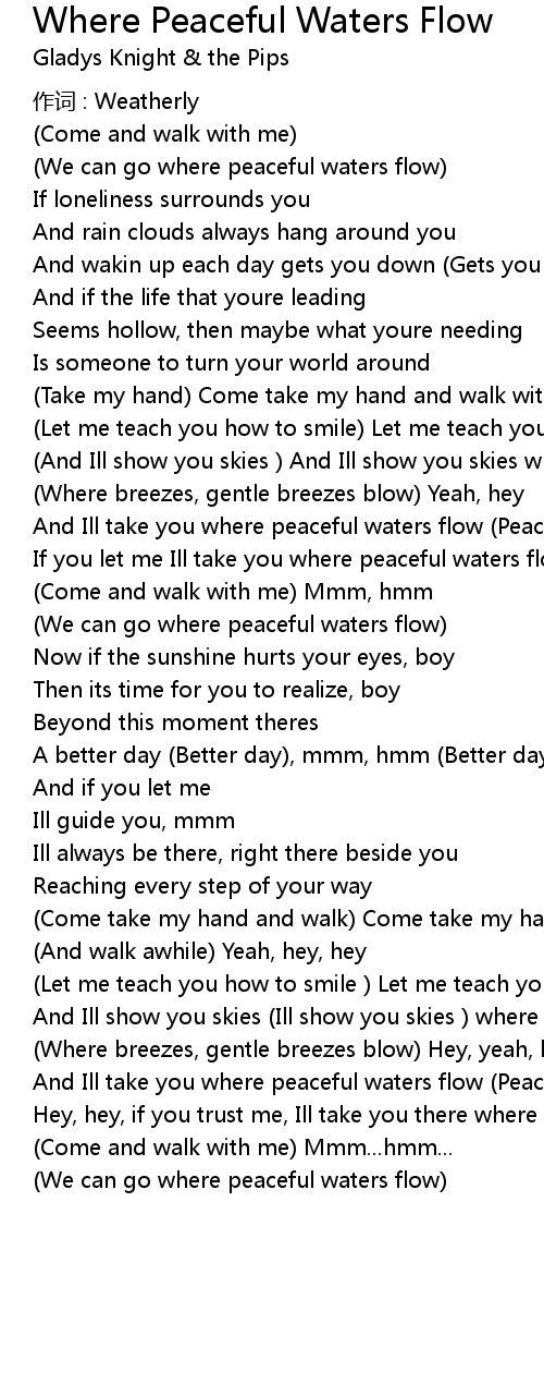 | And Ill take you where peaceful waters flow Peaceful waters flow | |