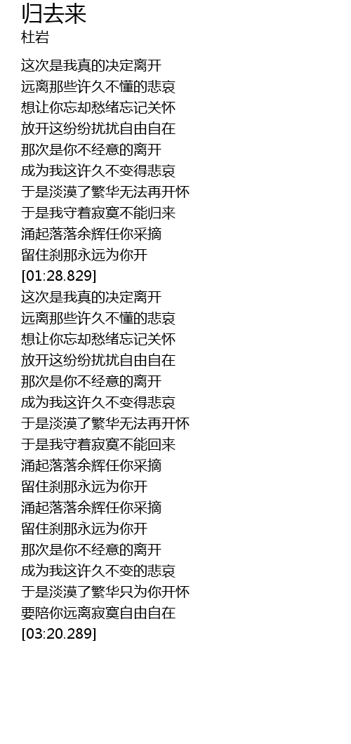 | [01:44.890] | 这次是我真的决定离开 |