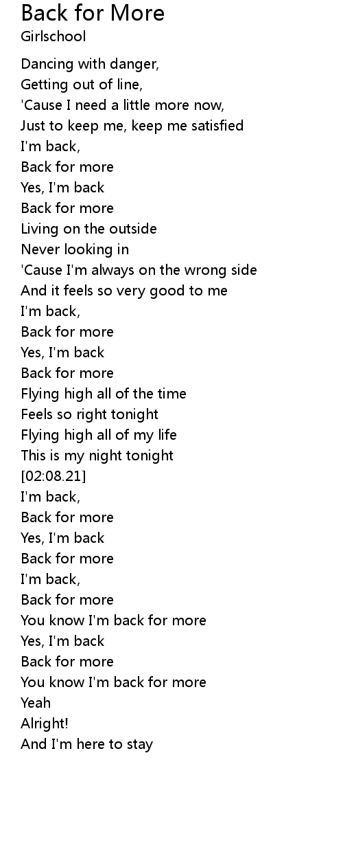 You know I'm back for more |