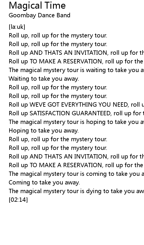 Roll up AND THATS AN INVITATION, roll up for the mystery tour. |
