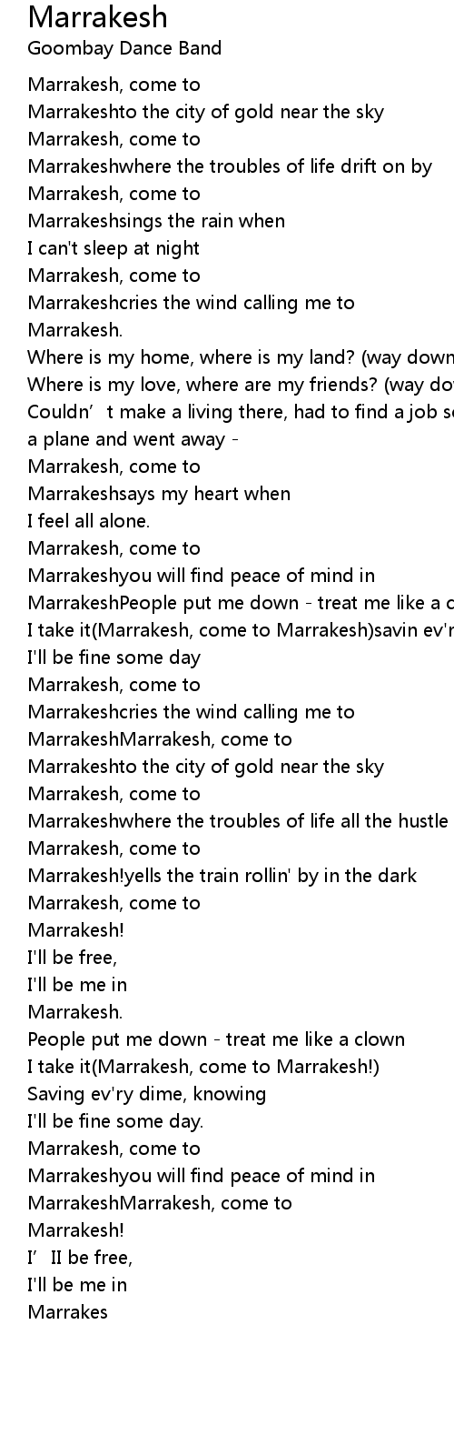 | Marrakeshwhere the troubles of life all the hustle and strife will go by | |