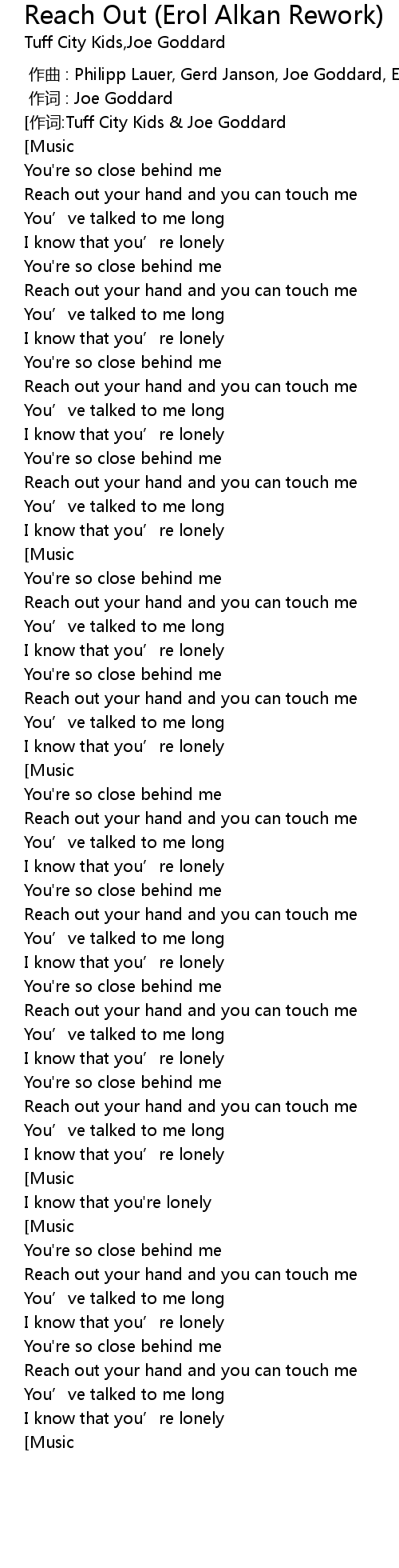 | [00:01.110][作词:Tuff City Kids & Joe Goddard] | |