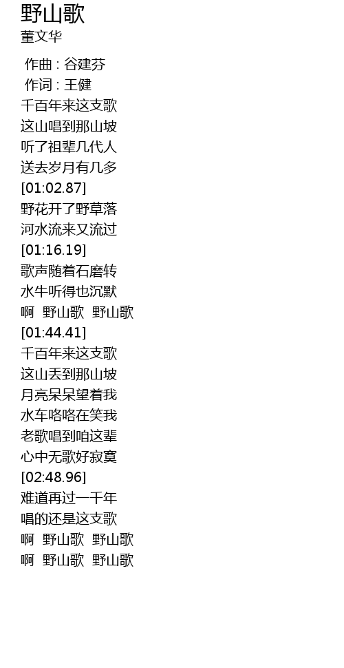 | [03:02.98] | 啊 野山歌 野山歌 |